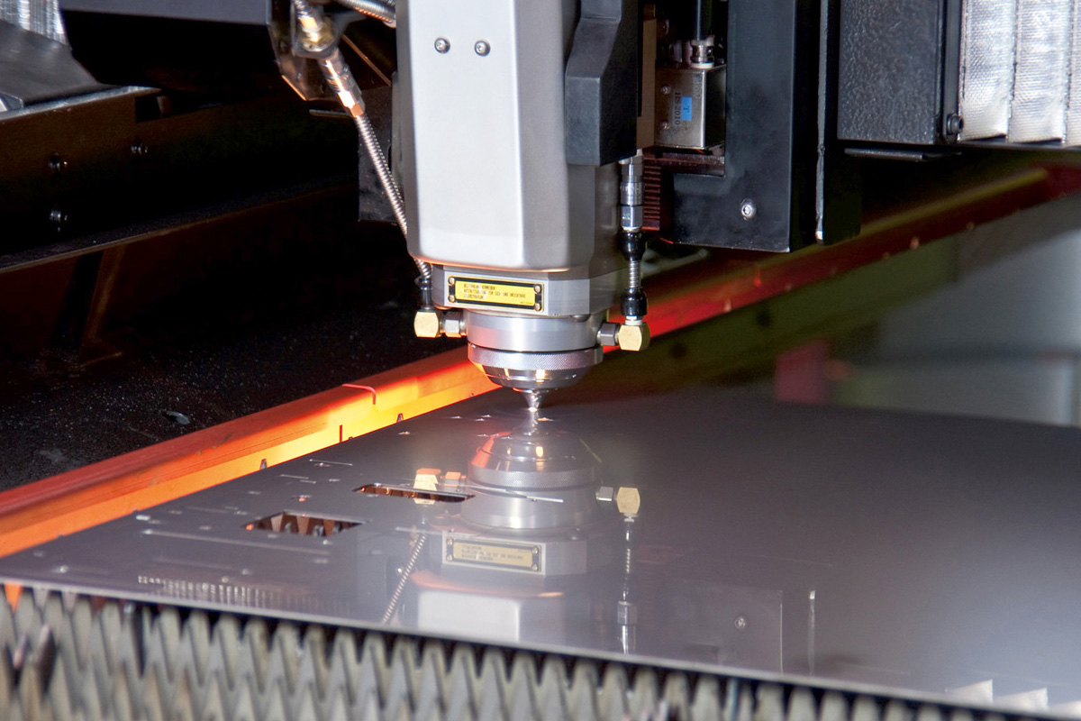 Mit modernster Faser-Laser-Technologie (Faser-Laserschneidmaschine Amada Ventis 3015AJ) ist es uns möglich nicht nur Dünnbleche, sondern auch schwer schneidbare Materialien wie Messing, Aluminium, Titan und Kupfer schnell, effizient, präzise und sicher zu schneiden. Durch ein integriertes optisches Vermessungssystem sind kombinierte Stanz-Laserteile (z.B. mit Umformungen) möglich.