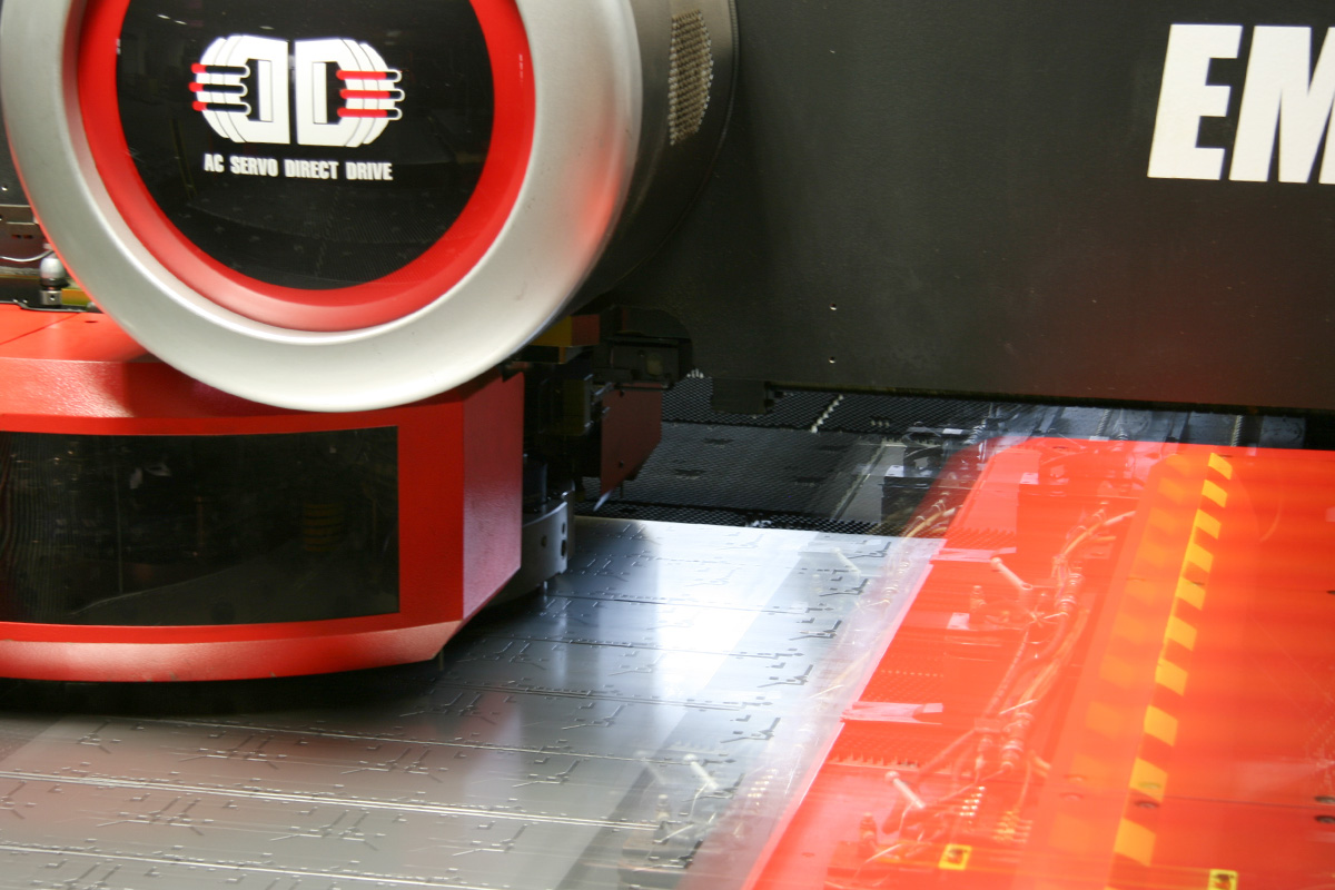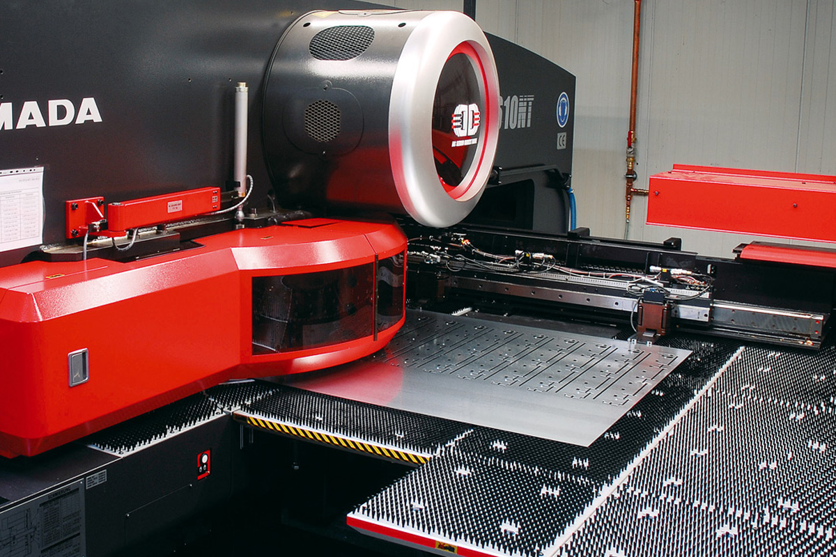 Unsere Stanz-Nibbel-Maschinen (Amada EM2510 NT, Amada EMZ3510 NT) mit Werkzeugwechselrevolver bieten Platz für jeweils 45 Werkzeugstationen, davon 4 drehbar. Die flexiblen Maschinen mit effektivem servoelektrischen Stanzantrieb bieten eine Vielzahl an Möglichkeiten der Bearbeitung, Markierung sowie durch eine entsprechende Einheit Umformungen und Formgebung von Blechen und freien Konturen.